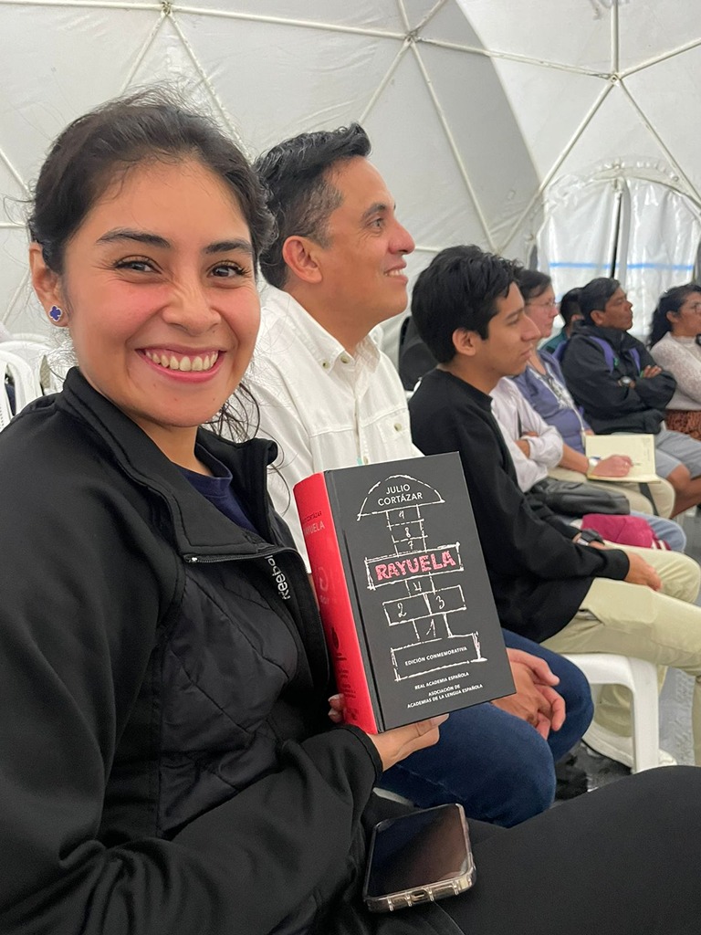 En nuestro Club de Lectura de Cobán nos reunimos para conversar sobre la obra de Julio Cortázar, Rayuela. Esta vez nos reunimos en el Parque Central de esta ciudad, en la Carpa Cultural de la Embajada de México en Guatemala, como parte del programa de actividades de la feria “Libro al Viento Verapaz”. En esta sesión tuvimos la oportunidad de conocer sobre el autor, las formas en que puede leerse el libro y además, jugamos a la Rayuela.